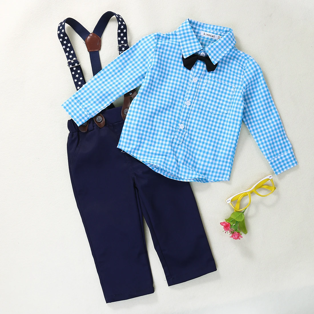 Good Offer of 2 pieces Stylish Plaid Shirt and Suspender Trousers Set for Baby Boy Autumn Winter Clothes