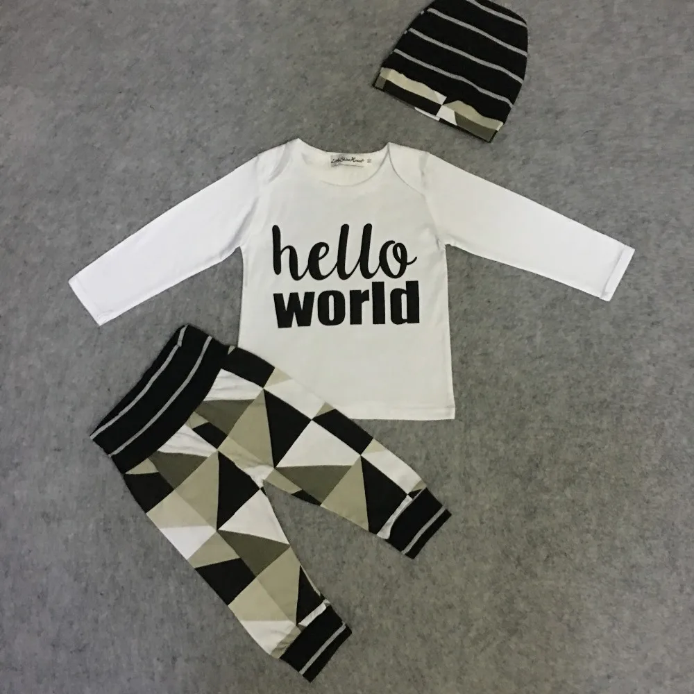Special Offer for 3pc Spring Autumn Cartoon Children's Clothing Letters T-shirt Pant Hat Cotton Long Sleeve Suit Chil