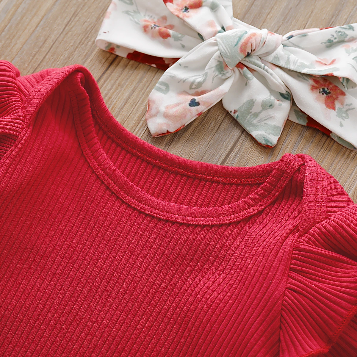 Best Offer for 3Pcs Newborn Infant Baby Girls Clothes Set Cotton Solid Bodysuit Floral Pants Headband Toddler Infa
