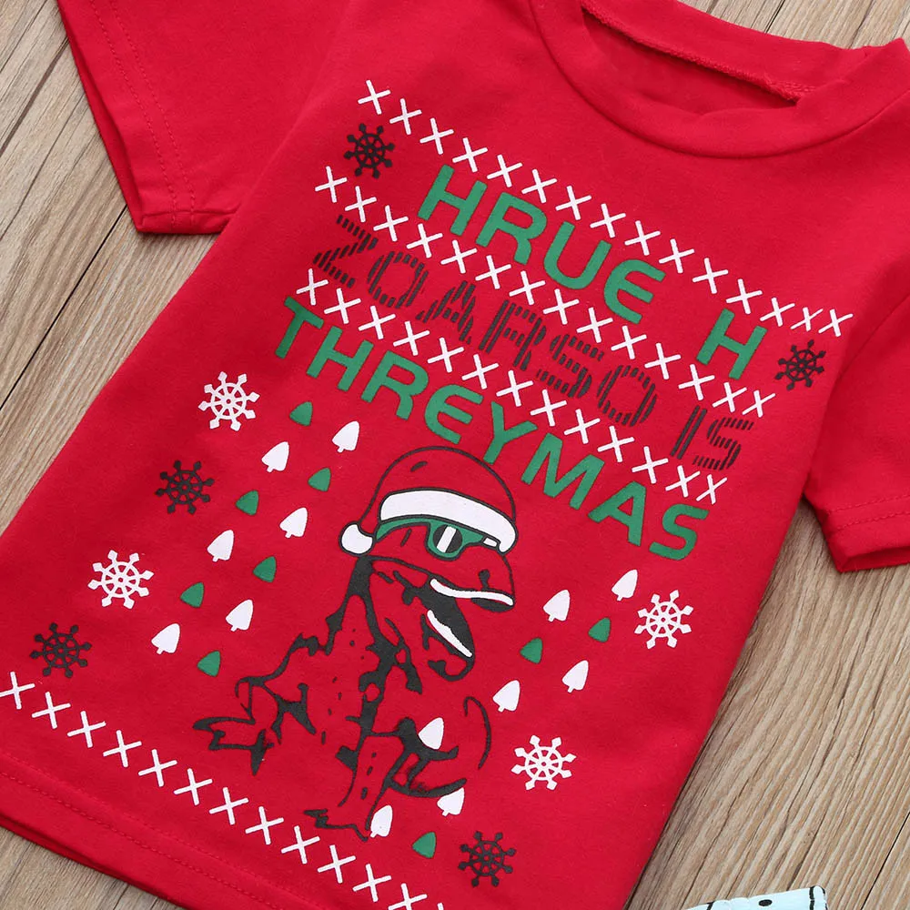 Good Chance of CHAMSGEND Toddler Baby Dinosaur Letter Cotton Blended Print Tops+Shorts Christmas Outfits Clothes J