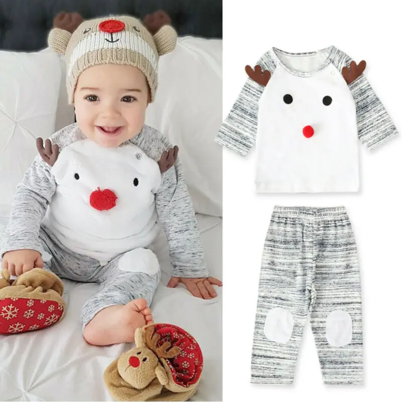 Limited Price for Christmas Newborn Baby Clothes Set Toddler Boys Girls Winter Long Sleeve Cartoon Reindeer Tops+Pant